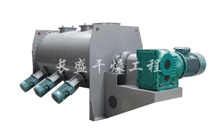 犁刀式混合機(jī)為單軸式強(qiáng)制攪拌設(shè)備,主軸安裝多組犁刀式攪拌器,并且錯(cuò)位連續(xù)安裝。工作時(shí),犁刀式攪拌器作圓周運(yùn)動(dòng),物料被犁刀刀面分流成兩個(gè)方向物料流,與鄰側(cè)犁刀分流過來的物料交叉擴(kuò)散,又形成不間斷式的漩渦離心物料流,漩渦離心物料流不斷重疊、擊散,當(dāng)流經(jīng)高速飛刀時(shí)又被飛刀葉片剪切和拋灑,致使物料沸騰,達(dá)到快速攪拌的效果。
